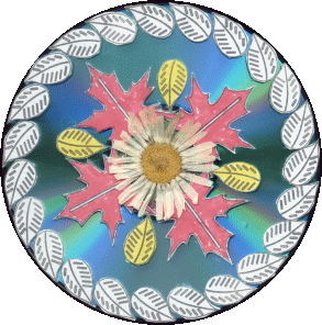 Далее все листики по контуру вырезаете и клеите на компакт-диск (на любую сторону, которая больше всего понравится), как показано на первом рисунке. Клей подойдет хоть ПВА, но я, к примеру, в виду отсутствия присутствия достойной клеящей альтернативы пользовался DRAGON’ом (им клеят плитки на потолок). А затем раскрашиваете наклеенные псевдо-листики фломастерами, как душе заблагорассудится. Если еще сумеете пройтись местами по раскрашенным листикам бесцветным женским лаком с блестками, то с расстояния получившийся "CD-гербарий" выглядеть будет просто супер.